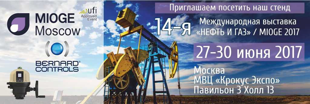 Компания BERNARD CONTROLS приглашает Вас и Ваших коллег посетить наш стенд А507 (Павильон 3, Холл 13) на 14-ой Международной выставке «Нефть и Газ» MIOGE 2017, которая пройдет в Москве с 27 по 30 Июня 2017 года в МВЦ «Крокус Экспо».