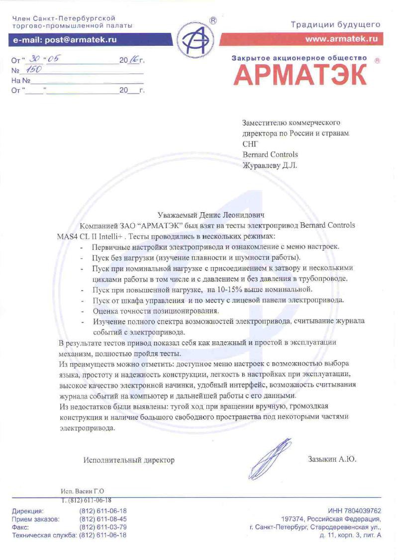 В феврале 2016 начались тестовые испытания электроприводов Bernard Controls EZ LOGIC и MAS4 CLIIIntelli+. По результатам испытаний привода показали себя как надежные и простые в эксплуатации механизмы, пройдя все тесты в полном объеме.